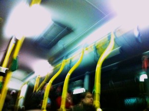 Nach dem Gedränge kaum dem Terminal entkommen, da heißt es dann Rauch oder Regen. Immer. Erst durch eine Rauchwolke vor dem Eingang. Ihr zu entkommen heißt raus in den Regen. Und weiter durch einen Tunnelverhau, durch den man treppauf und zickzack laufen muss. Hier lässt zwar wegen einer Überdachung der Regen von oben nach, dafür stresst stets ein nicht einzuholender Gewaltraucher vor einem, wahrscheinlich vom Flughafen zu diesem einzigen Zweck extra angestellt, der einen mit seinen Ausdünstungen das Keuchen lehrt. “Wieso kann der überhaupt noch so schnell?” denkt man da noch und entdeckt im selben Augenblick in der Ferne auch schon den TXL-Bus mit rot glühenden Bremsleuchten. Also doch noch laufen, und nach Überholen des Gewaltrauchers steht man schließlich vor dem Bus, der in diesem Moment immer die Türen schließt und einen im Regen stehen lässt. Nur diesmal muss etwas schief gegangen sein. Diesmal kann die Schütteltour der verzerrten Gesichter zur Ringelbahn gleich losgehen. Willkommen in Berlin! Bleiben Se am besten gleich hier! Was wollen Se denn überhaupt da draußen in der gefährlichen Welt?
