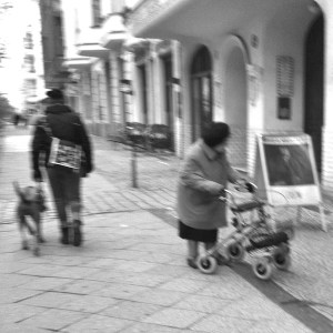 Im Gegensatz zur Arbeit scheint der Weg dorthin immer gleichermaßen monoton, obwohl alles hübsch bunt und im Sommer auch schön grün ist. Die Leute, denen man begegnet, wirken in der Mehrheit genervt und verschlossen und ziehen verzerrten Angesichts an einem vorüber. Hier muss das Leben aber besonders schwer sein, denke ich mir. Es begegnen mir drei Typen: die Einzelgänger wie ich, entweder rücksichtslos auf dem Fahrrad daherpreschend oder starren Gangs, dabei manchmal hungrig an einer Zigarette ziehend; das Elternteil, meist weiblich, mit einem Kind stressend oder gleich mehreren — solche benötigen immer viel Platz, sei es mit oder ohne Rad oder Wagen. Den dritten Typ gibt es hier leider selten: Ganz normale ältere Menschen mit ihren ganz uncoolen Gebrechen.