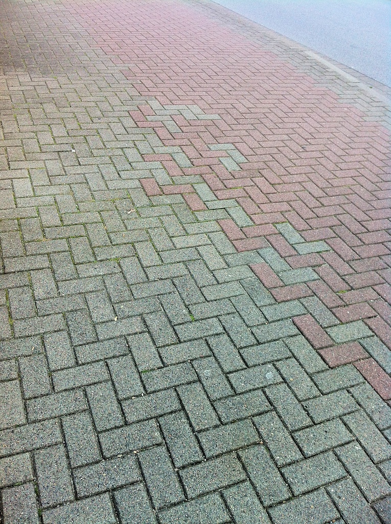 Rund um die Flensburger Hafenspitze z.B. verläuft eine Art Radweg. Dort ist sogar ein Schild aufgestellt, das dem Radwanderer Fernziele in Aussicht stellt. Nur bemerkt keiner den Radweg, der sich von seiner Umgebung nur durch die abweichende Farbe seiner Betonfließen abheben soll, welche aber von den meisten Passanten, sofern er überhaupt bemerkt wird, eher für eine Art schicke Deko gehalten werden dürfte. Kein Fußgänger hat eine Chance, den Sinn der Farbfließen zu eruieren und sieht sich folglich völlig im Recht, Radfahrer ob ihres rüpelhaften Verhaltens auf der Promenade zur Ordnung zu rufen.